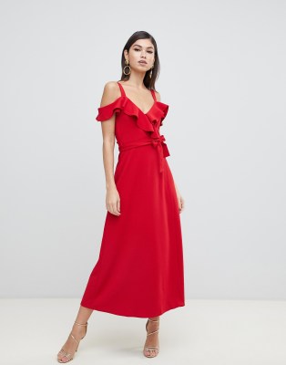 Red Cold Shoulder Ruffle Detail Maxi Dress Summer Dresses Cold Shoulder Floral Print Dress .