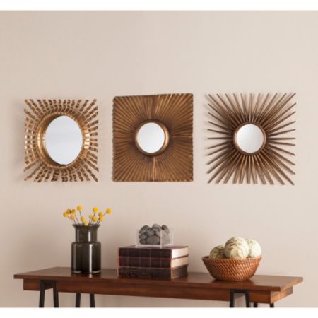 mirror decorative piece gold enterprises southern square antique mirrors walmart modern decor lansbury midcentury accent mid officedepot larger Better Homes & Gardens 3-Piece Round Sunburst Mirror Set in Gold Finish.