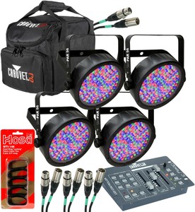 Low-profile fixture fits most places other lights cannot . If you don't see it, it doesn't mean we don't have it. Home > DJ Light Packages > 4 X Chauvet DJ Slimpar 56 Package. DMX channels: 3 or 7 DMX connectors: 3-pin Light source: 108 (36 red, 36 green, 36 blue) 0.25W (20mA) LEDs100,000hrs Beam angle: 14 Field angle: 23 Illuminance: 876 @ 2 m Power linking: 50 units @ 120 V / 100 units @ 230 V Input voltage: Auto-ranging 100-240 VAC 50/60 Hz Power and current: 24 W, 0.2 A @ 120 V 60 Hz Power and current: 27 W, 0.1 A @ 230 V 50 Hz Weight: 2.7 lbs (1.2 kg) Size: 9.5 x 8.8 x 2.2 in (241 x 224 x 56 mm) Approvals: CE, MET, (1) Chauvet DJ SlimPAR 56(1) 10FT Sure-Fit DMX Connecting Cable(1) IDJNow EXT10PRO Black 10FT 16 Gauge AC Extension Cord(1) Universal C-Clamp With Snug Fit Grip, (1) SlimPAR 56(1) Power Cord(1) Warranty Card(1) User Manual. Shielded for