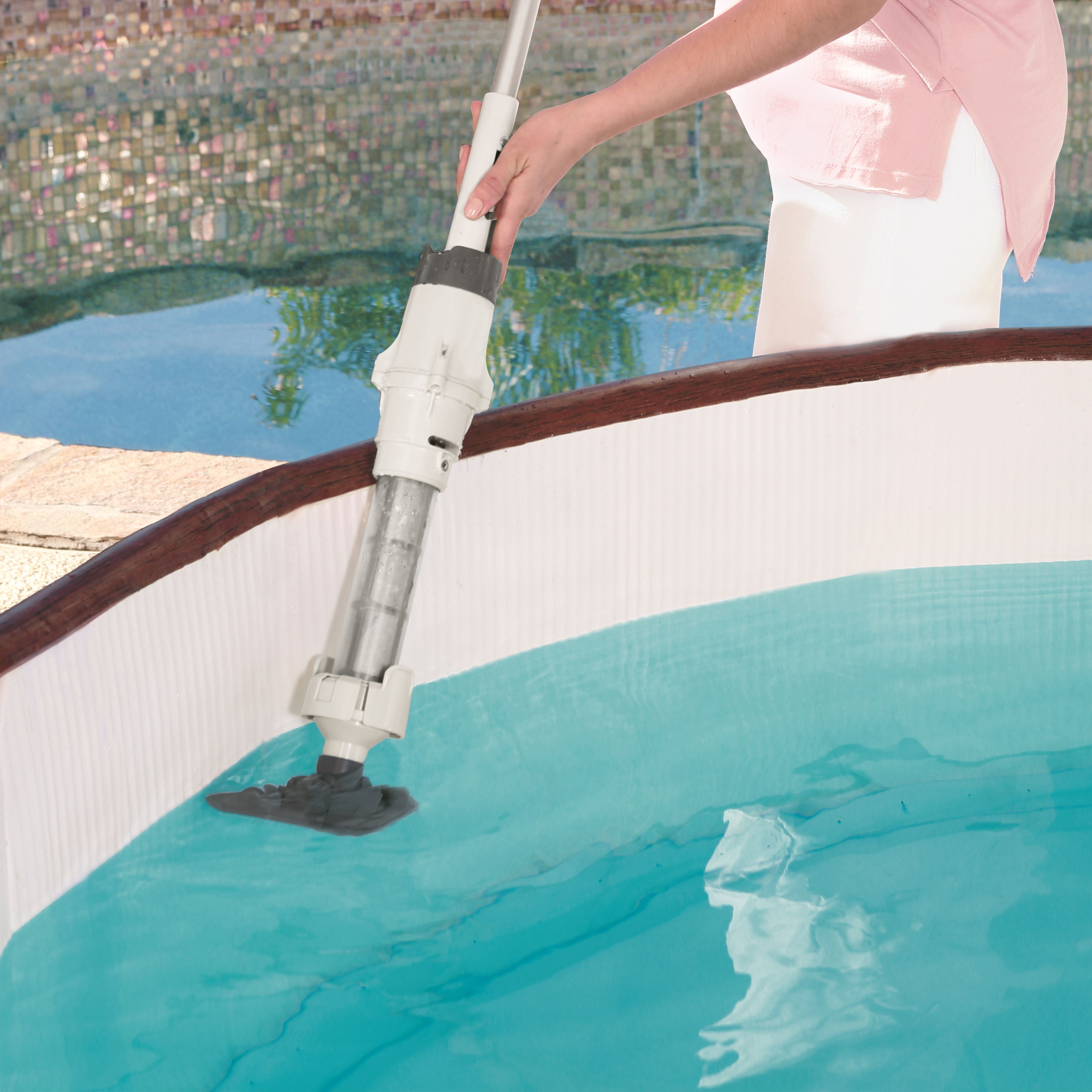 bestway skimmer 52in If you arent careful, the Pentair R201276 might suck you up! Another reported that, It does work, but uses a lot of water from your hose. Perhaps this reviewer summed it up best when he said, It picked up the debris on the ground of my swimming pool pretty well. Having the right tools on hand makes all the difference when it comes to pool maintenance. Plus, the vacuums below are usable on all types of pools, from small above ground models to larger in ground pools (and even those nifty inflatable pools and inflatable hot tubs!). Next, how big is your above ground pool? In addition to a good filtration system, a swimming pool vacuum cleaner helps you keep your pool crystal-clear and inviting on the hottest days of the year. One Amazon reviewer wrote, I have a 24 round above-ground pool and needed something to quickly clean up minor debris without much hassle. When it came in, I almost sent it back without trying it as I thought it was too small. Weve rounded up a selection of above ground swimming pool vacuum cleaners that are reliable, affordable, and easy to use.