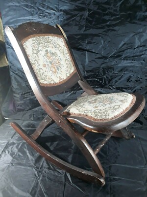 rocker tapestry upholstery nursing carved folding A sewing rocker in good condition from the late 1800s sold in 2020 for $125.