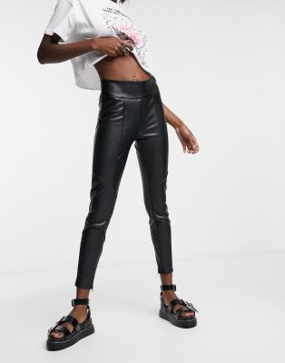 Bershka straight leg faux leather pant in black | ASOS Hide House.