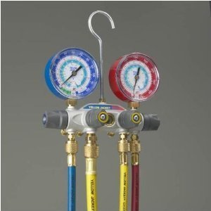 refrigerant jacket yellow gauges manifold degrees psi 410a 404a scale gauge compound ac titan charging Eastwood