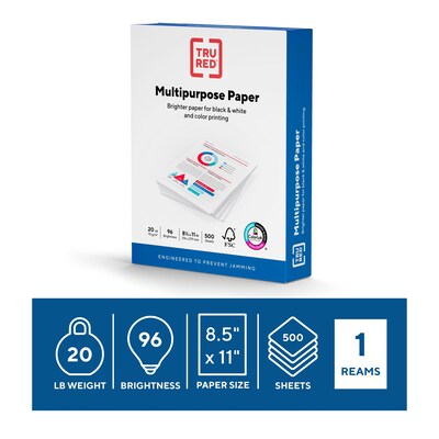 ream 1x qpoint Get TRU RED 8.5" x 11" Multipurpose Paper, 20 lbs., 96 Brightness, 500 Sheets/Ream, 5 Reams/Carton (TR56963) fast and with free shipping on qualifying orders at Staples.