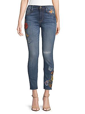 Skinny embroidered jeans. Driftwood