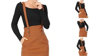 Womens Suspender Skirts Dress Basic High Waist Versatile Flare Women's Bottoms.