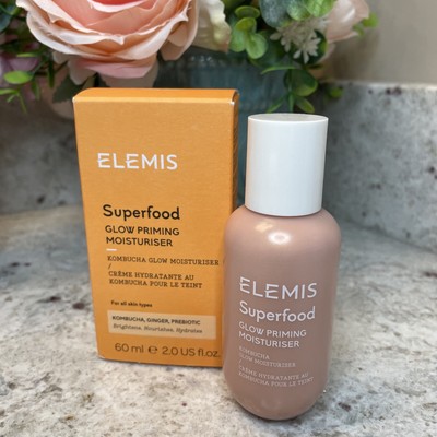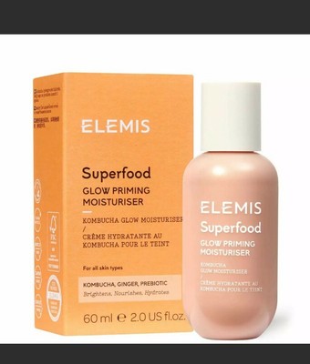 Elemis Superfood Glow Priming Moisturiser 60ml Superfood Day Cream 50ml/1.6oz A nutrient-rich, superfood-charged facial moisturizer Packed with anti-oxidant-rich oils & vitamin-rich Superfoods Helps replenish skin with vital hydrating nourishment Promotes good microflora on skin & protects from environmental aggressors Enhanced with sugar-derived Pre-Biotic for balancing action